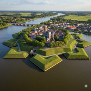 Vesting Geertruidenberg, gelegen op een strategisch knooppunt waar de Maas en de Biesbosch samenkomen, is een van de oudste en historisch meest gelaagde vestingsteden van Nederland. De geschiedenis van deze stad is diep verankerd in de machtsstrijd van de graven van Holland en de latere onafhankelijkheidsoorlog van de Republiek. Van een belangrijke middeleeuwse grensstad tot een geavanceerd bastionfort in de Zuiderfrontier en tegenwoordig een stad waar de vestinggeschiedenis nog overal voelbaar is, weerspiegelt Geertruidenberg de evolutie van de Nederlandse vestingbouw en de eeuwenlange strategische betekenis van water en land.