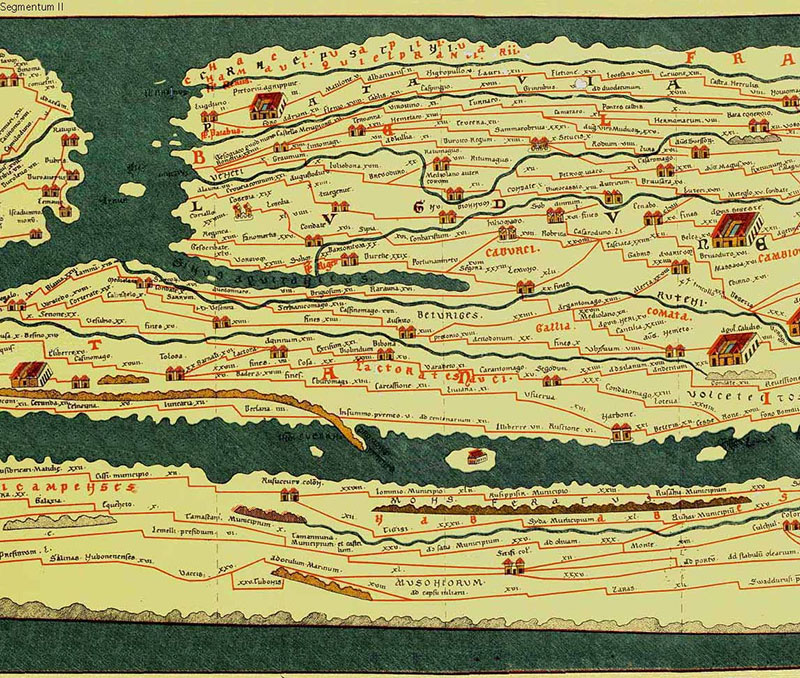 Op een rol perkament van 34 cm hoog en 6,82 meter lang zijn de belangrijkste wegen en plaatsen in het Romeinse rijk afgebeeld, vanaf de Noordzee tot ver in India.