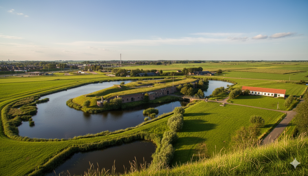 Fort bij Ankeveen, verscholen in het waterrijke natuurgebied van de Ankeveense Plassen, is een van de laatste en meest robuuste betonnen forten die gebouwd zijn als onderdeel van de Stelling van Amsterdam. De geschiedenis van dit complex is geen verhaal van adellijke bewoning, maar van de ultieme poging om de Nederlandse hoofdstad te verdedigen met een onneembare ring van fortificaties en water. Van een hypermodern bolwerk dat vrijwel onmiddellijk na de bouw al technologisch achterhaald was, tot een vergeten militair object en tegenwoordig een beschermd natuurreservaat, weerspiegelt Fort bij Ankeveen de laatste fase van de Nederlandse vestingbouw en de succesvolle transformatie van militair erfgoed naar een ecologische bestemming.
