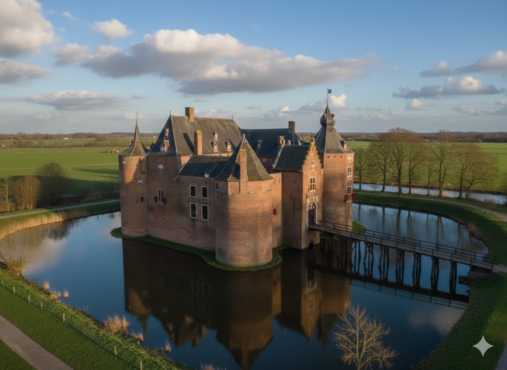 Kasteel Ammersoyen, gelegen in het Gelderse rivierenlandschap nabij Ammerzoden, is een van de best bewaarde en meest archetypische voorbeelden van een middeleeuwse waterburcht in Nederland. De geschiedenis van dit imposante slot is een verhaal van feodale macht, innovatieve vestingbouw, verwoesting en een schoolvoorbeeld van wetenschappelijke restauratie. Van een bijna onneembaar militair bolwerk tot een klooster en uiteindelijk een zorgvuldig gereconstrueerd museum, weerspiegelt Ammersoyen op unieke wijze de essentie van de middeleeuwse kasteelarchitectuur en de moderne benadering van monumentenzorg.