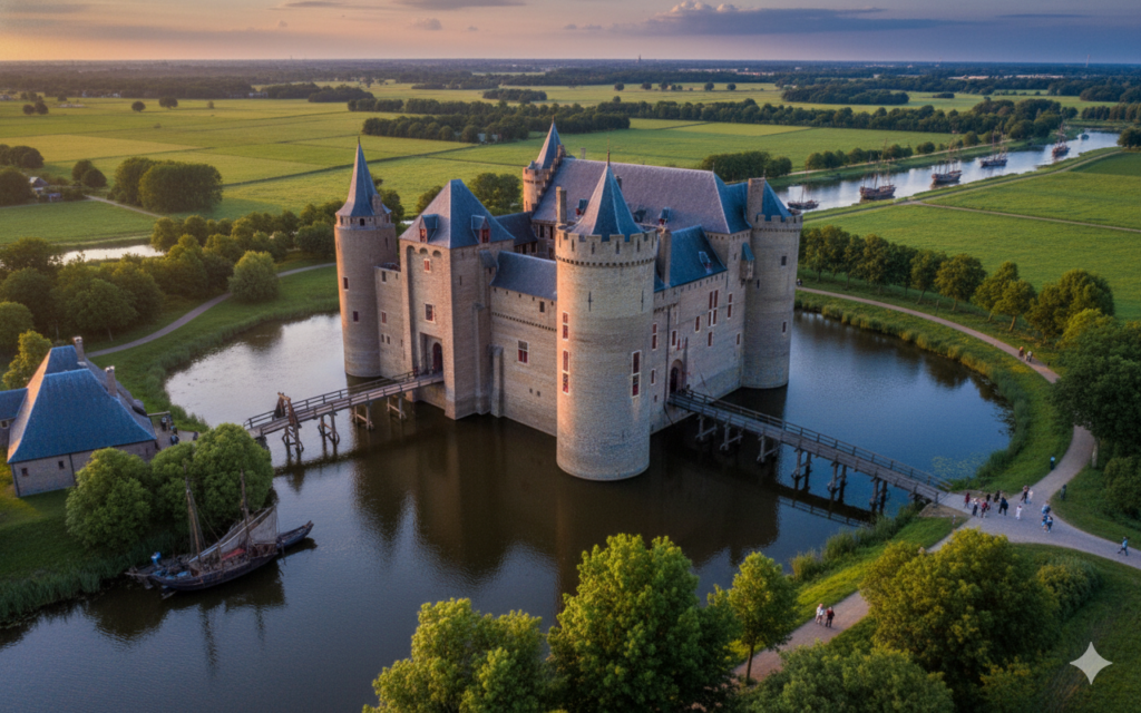 Het Muiderslot, iconisch gelegen aan de monding van de Vecht in het IJmeer, is een van de oudste, bekendste en best bewaarde middeleeuwse waterburchten van Nederland. De geschiedenis van dit kasteel is een gelaagd verhaal van feodale macht, culturele bloei in de Gouden Eeuw en de geboorte van de Nederlandse monumentenzorg. Van een strategisch tolkasteel van de Hollandse graven tot de literaire salon van P.C. Hooft, en van een vervallen ruïne tot het eerste rijksmuseum van Nederland, weerspiegelt het Muiderslot op unieke wijze de militaire, politieke en culturele geschiedenis van Holland.
